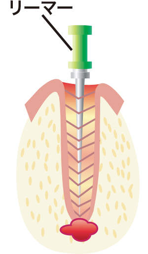 ①リーマーという器具を使って歯の中に入っている古い薬を取り除きます。