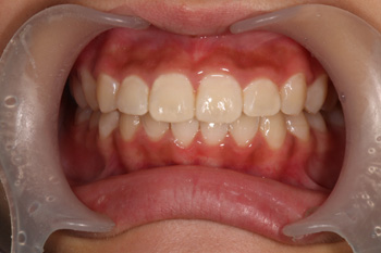 小さな頃から検診で通っていただいている患者様です。昔から歯の健康に気をつけておられましたが、歯並びについては悩んではおられるもののなかかな矯正には踏み出せずにおられました。 11歳になられてから、お母様から矯正についてのご相談があり、トリートメントコーディネーターからの説明を受けた後、矯正相談を希望されました。 11歳という年齢は、小児矯正(Ⅰ期矯正)を始めるには微妙な年齢ですが、矯正医の診断を受け、Ⅰ期矯正による咬合育形成という顎を拡げて歯を並べる矯正をスタートしました。