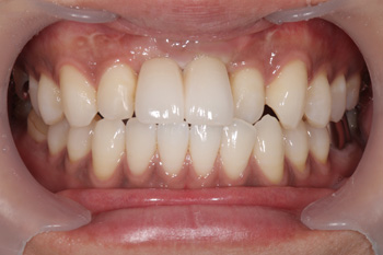 | 治療の内容 | 上顎前歯2本の2度の骨造成とインプラント治療と歯肉移植、ホームホワイトニングの総合治療。 |