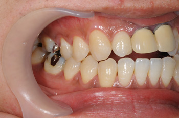 欠損部位以外にも、歯周病が進行しており、インプラント治療の前に並行して歯周病治療を行っていきました。 ご本人様の協力もあり、治療後にはかなり口腔内の環境も整いました。