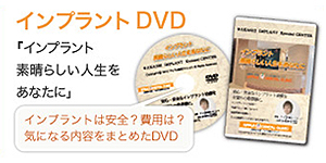 インプラントをお考えの方、また興味はあるけど不安な方のために、インプラントについて分かりやすくご説明をしたDVDをお渡ししています。インプラント治療の安全性や痛みの問題、費用のことまで聞きにくいことも詳しくご説明しています。